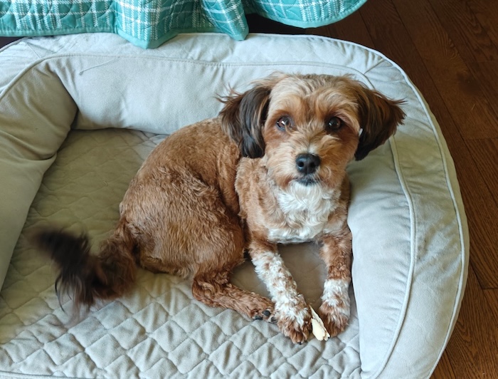 Lucyʼs last litter (with Teddy) is due on October 15, 2025.